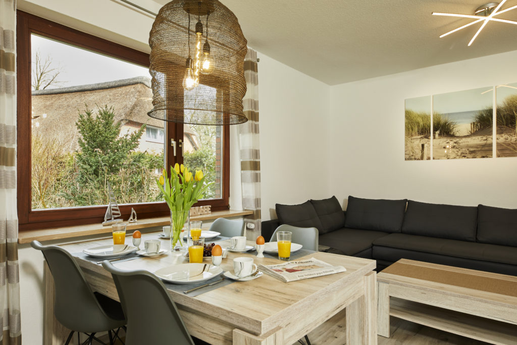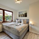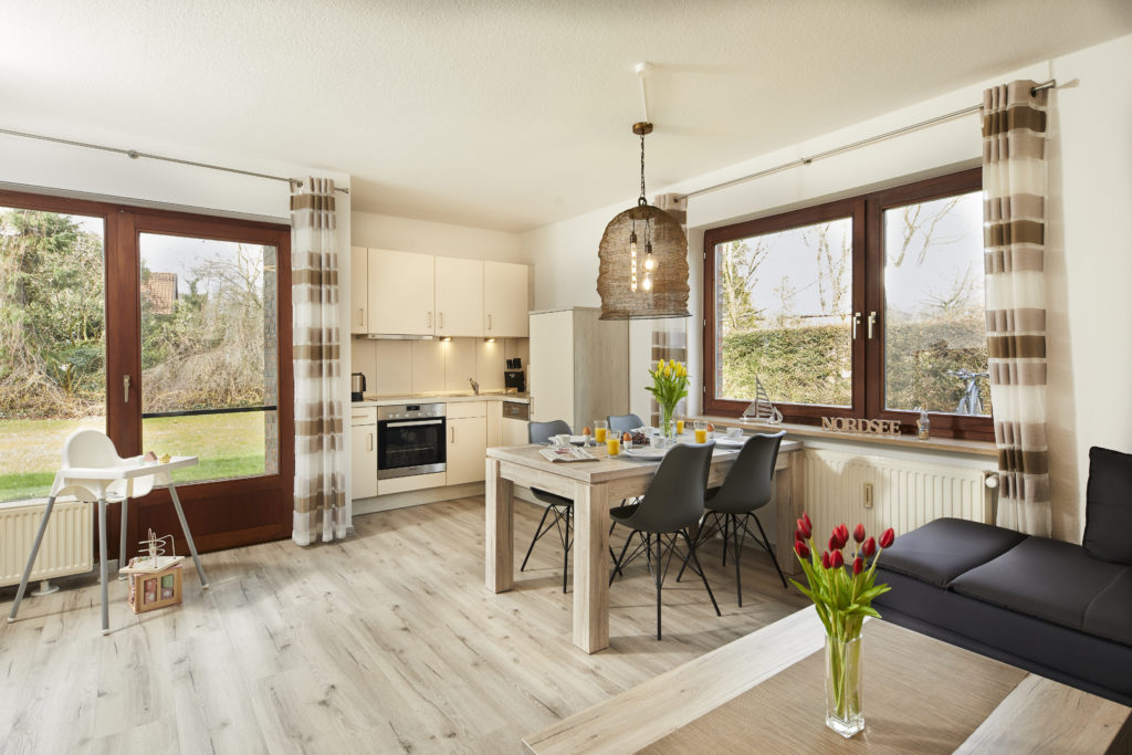 Die Ferienwohnung wurde im Jahr 2021 komplett renoviert und in diesem Zuge hochwertig und liebevoll neu eingerichtet. Zudem wurde das Badezimmer ebenfalls vollständig saniert und mit einer ebenerdigen Dusche ausgestattet. Außerdem ist ein großes Wohnzimmer vorhanden, welches mit einer neuen Einbauküche zum gemeinsamen Kochen einlädt. Die Küche verfügt unter anderem über einen Backofen, ein Cerankochfeld, einen Geschirrspüler und einen Kühlschrank inkl. Gefrierfach. Zudem steht Ihnen ein Wasserkocher, eine Kaffeemaschine und ein Toaster zur Verfügung. Vom Wohnzimmer aus gelangt man direkt in den großen Garten.